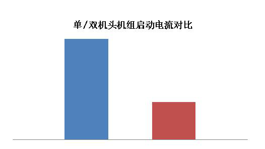 (1)更低的啟動電流:?雙壓縮機機組的壓縮機逐臺啟動,可實現(xiàn)同冷量單壓縮機機組60%的啟動電流,對電網(wǎng)的沖擊更小,特別適用于裝機臺數(shù)較少或現(xiàn)有機房改造項目。